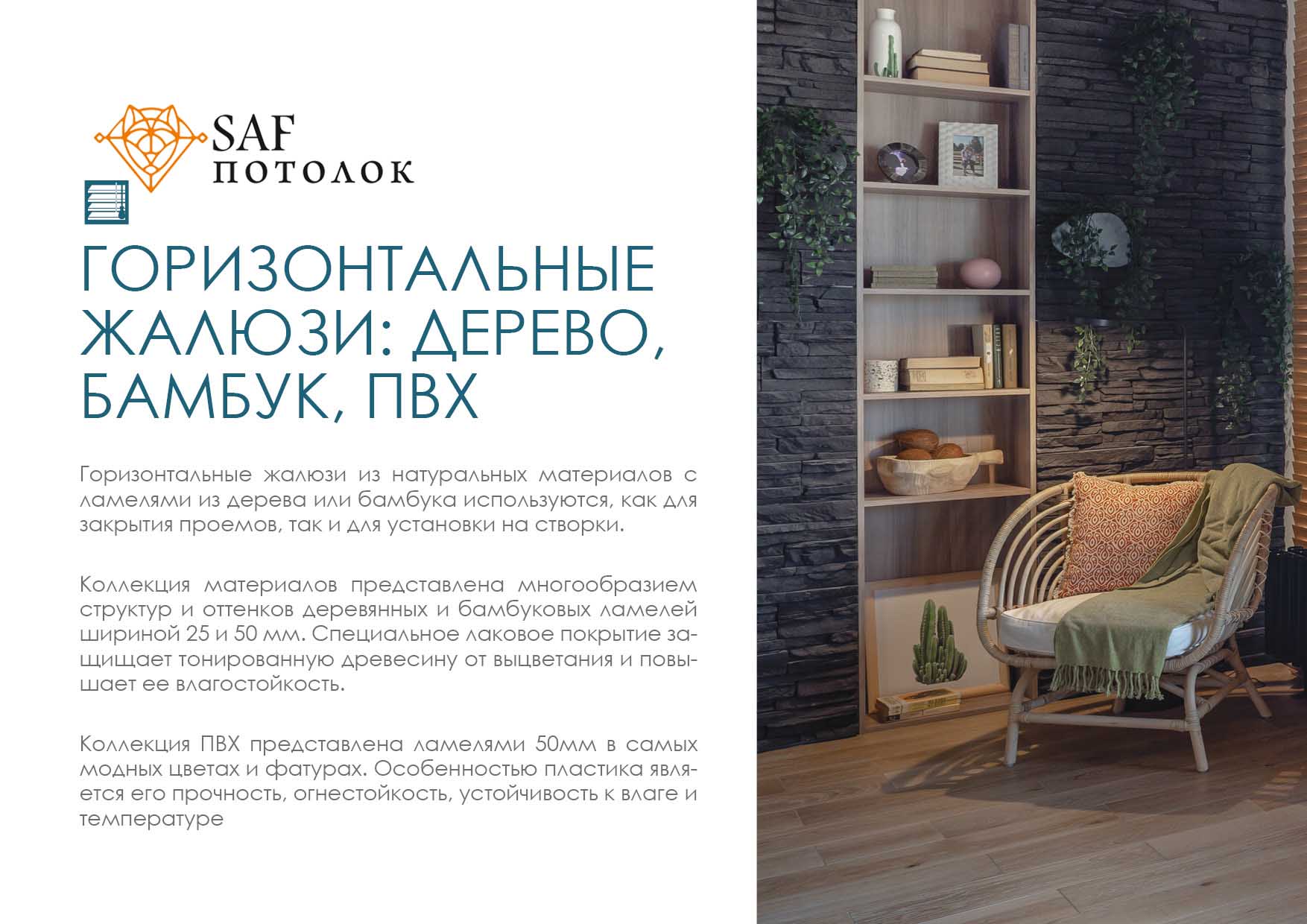 - Деревянные жалюзи придают естественность и теплоту любому помещению. Они доступны в различных породах дерева и отделке в соответствии с различными стилями интерьера.