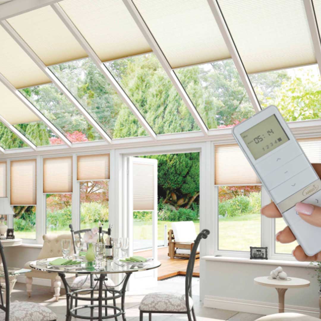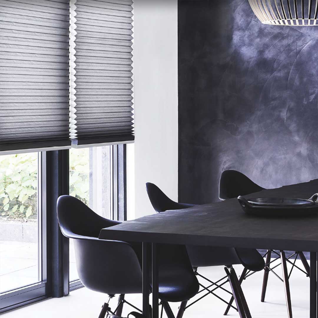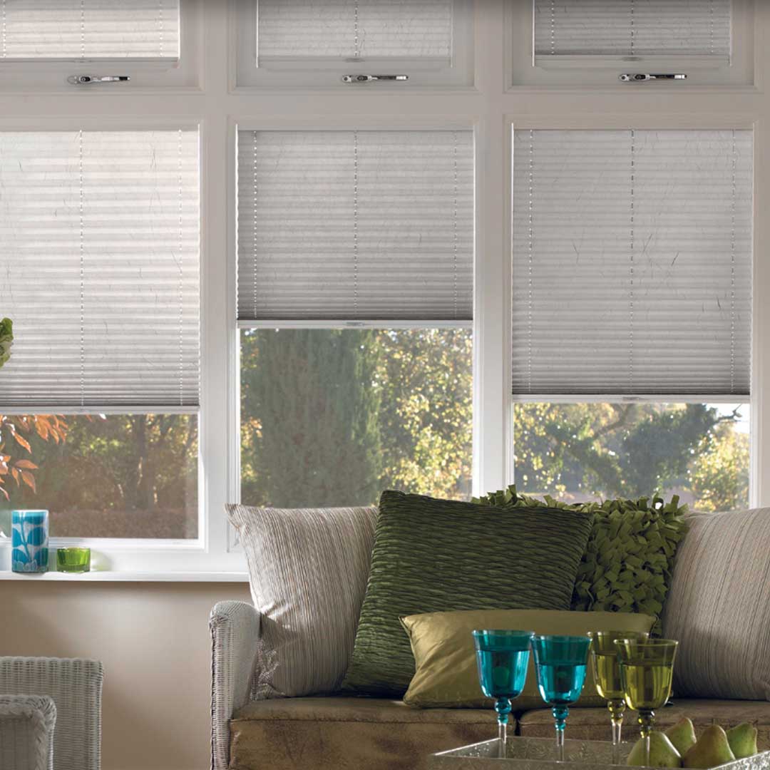 - Плиссированные жалюзи - стильный вариант, идеально подходящий для зимних садов или комнат с окнами уникальной формы. Они сшиты из плиссированной ткани, которая при поднятии создает эффект гармошки.